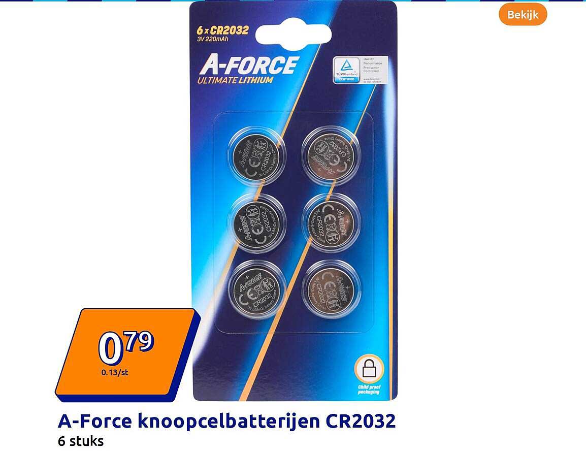 Bekijk nu de A-Force knoopcelbatterijen CR2032 6 stuks aanbieding in de Action folder. Deze aanbieding is geldig van 17-09-2025 tot en met 23-09-2025.