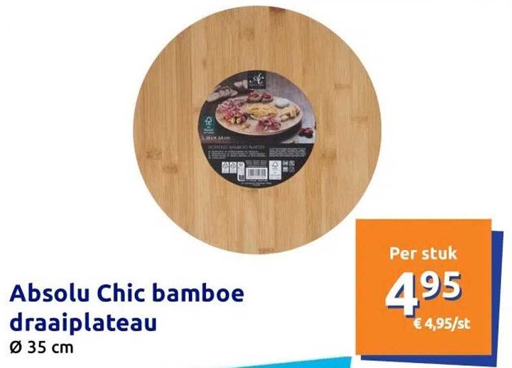 Bekijk de Absolu Chic Bamboe Draaiplateau aanbieding bij Action! Deze fantastische aanbieding is nu beschikbaar in de nieuwste Action folder. Profiteer van deze kans en bespaar flink op je aankoop.