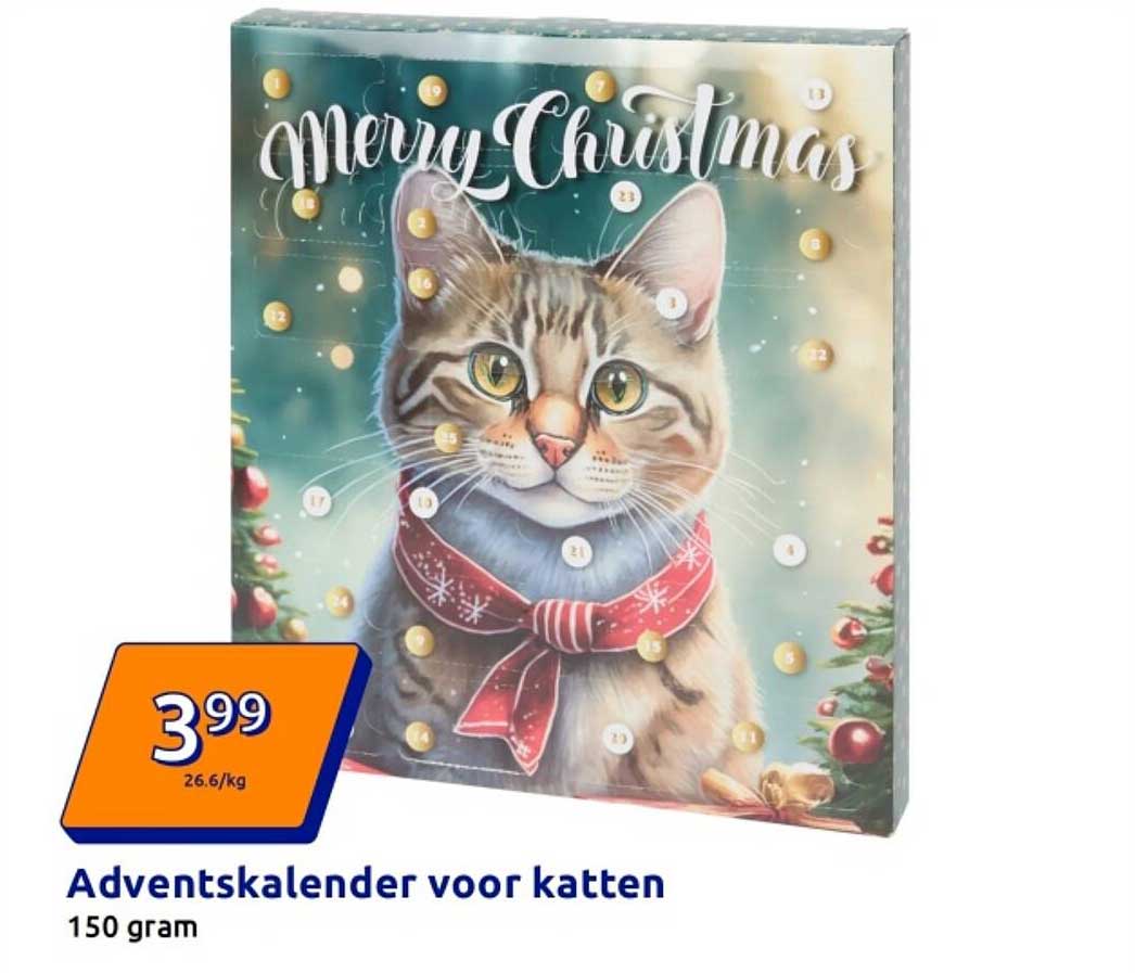 Bekijk nu de Adventskalender voor katten aanbieding in de Action folder. Deze aanbieding is geldig van 29-10-2025 tot en met 04-11-2025.