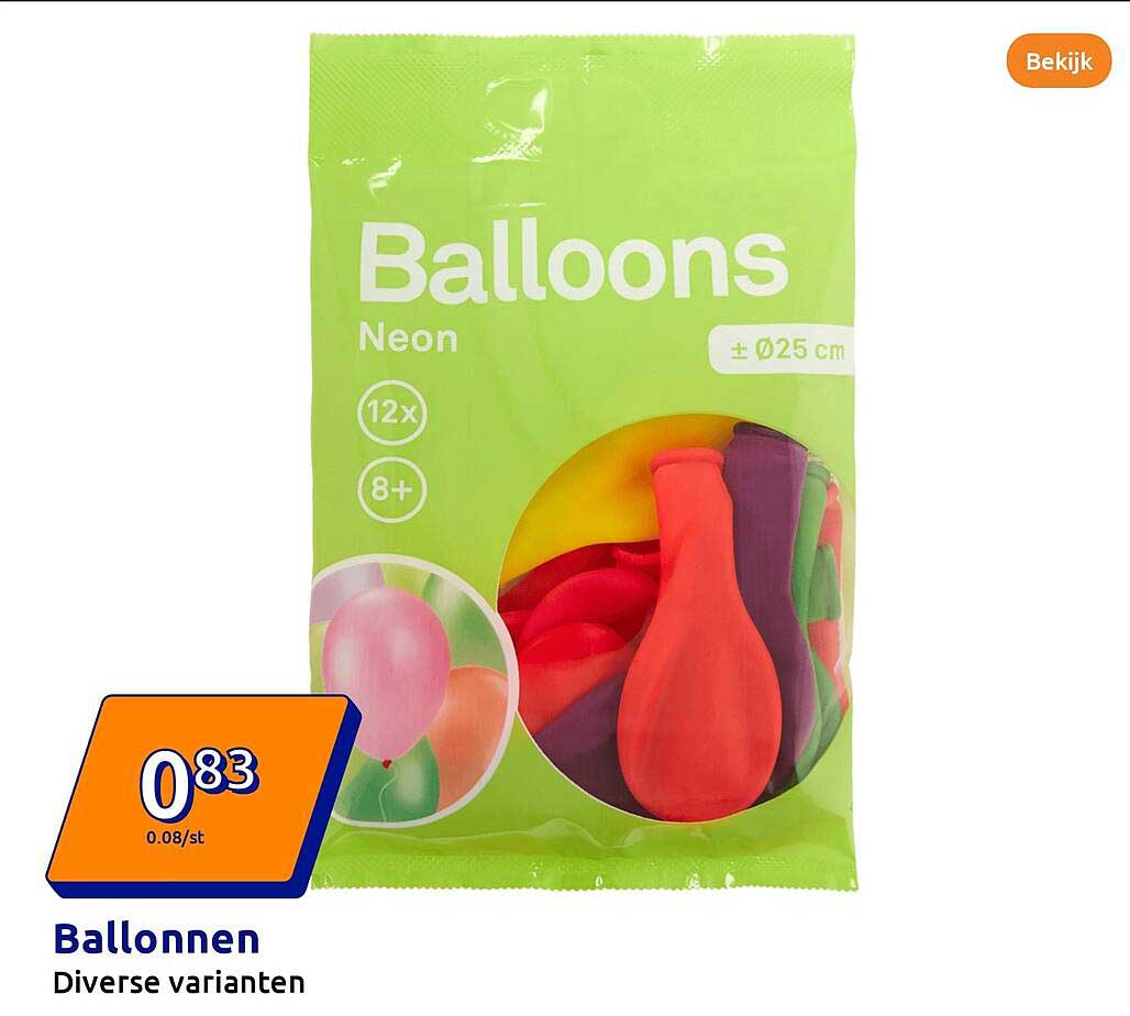 Bekijk de Ballonnen aanbieding bij Action! Deze fantastische aanbieding is nu beschikbaar in de nieuwste Action folder. Profiteer van deze kans en bespaar flink op je aankoop.