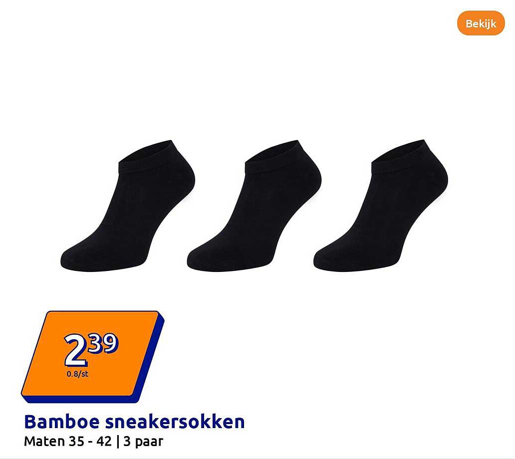 Ontdek de geweldige Bamboe Sneakersokken aanbieding in de nieuwste Action folder. Naast deze aanbieding vind je nog veel meer aantrekkelijke kortingen. Je kunt de Bamboe Sneakersokken eenvoudig online bestellen via de Action website of kopen in een winkel bij jou in de buurt.