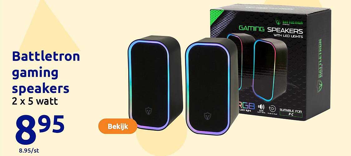 Bekijk nu de Battleton gaming speakers 2 x 5 watt aanbieding in de Action folder. Deze aanbieding is geldig van 29-10-2025 tot en met 04-11-2025.
