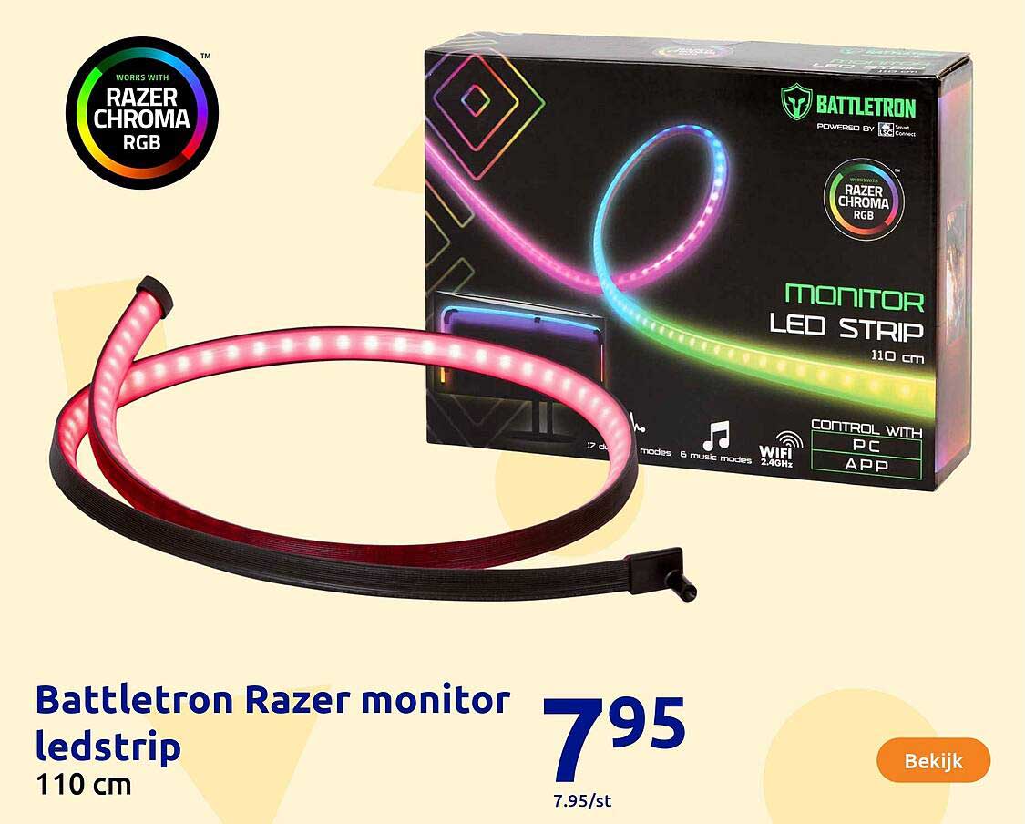 Bekijk nu de Battlettron Razer monitor ledstrip 110 cm aanbieding in de Action folder. Deze aanbieding is geldig van 29-10-2025 tot en met 04-11-2025.