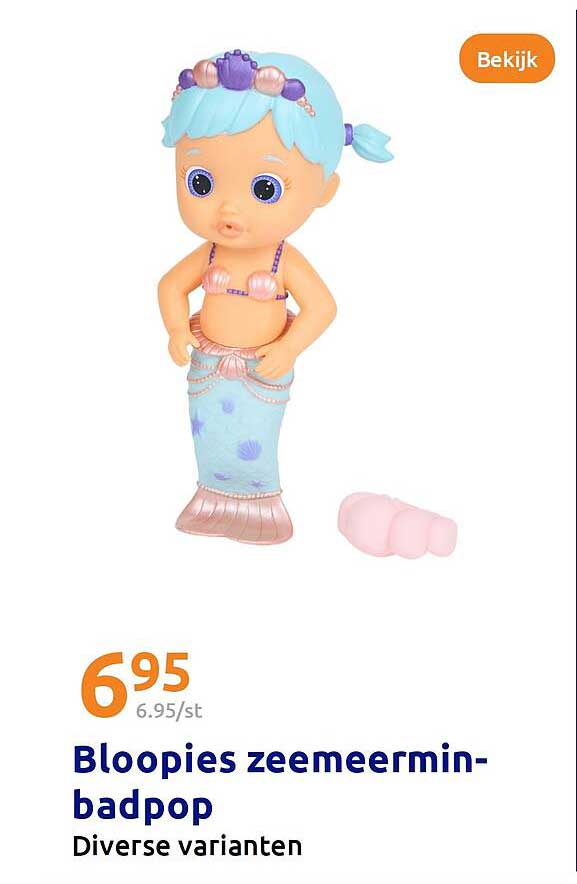 Bekijk nu de Bloopies zeemeermin-badpop aanbieding in de Action folder. Deze aanbieding is geldig van 23-04-2025 tot en met 29-04-2025.