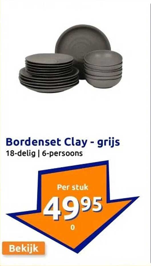 Bekijk nu de Bordenset Clay - grijs aanbieding in de Action folder. Deze aanbieding is geldig van 01-01-2025 tot en met 07-01-2025.