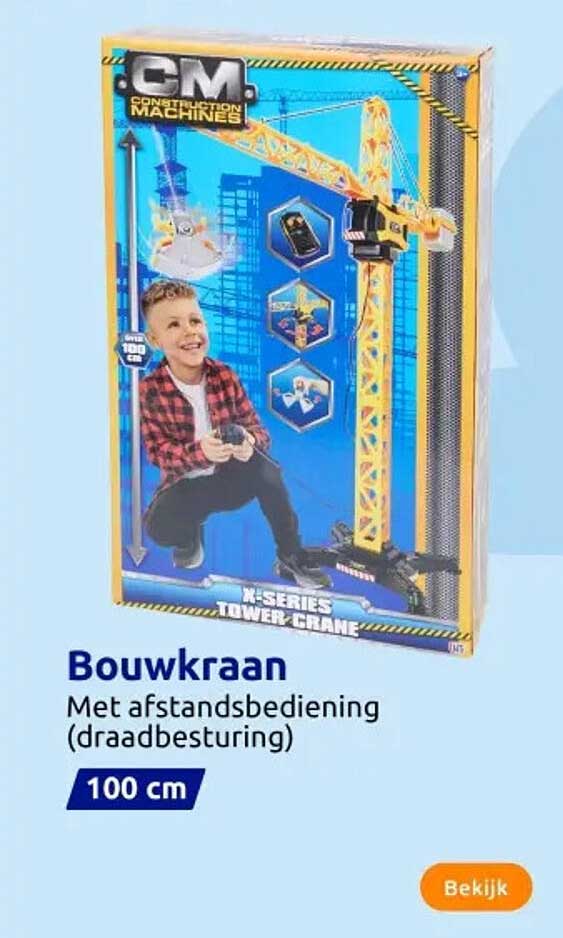 Bekijk de Bouwkraan aanbieding bij Action! Deze fantastische aanbieding is nu beschikbaar in de nieuwste Action folder. Profiteer van deze kans en bespaar flink op je aankoop.