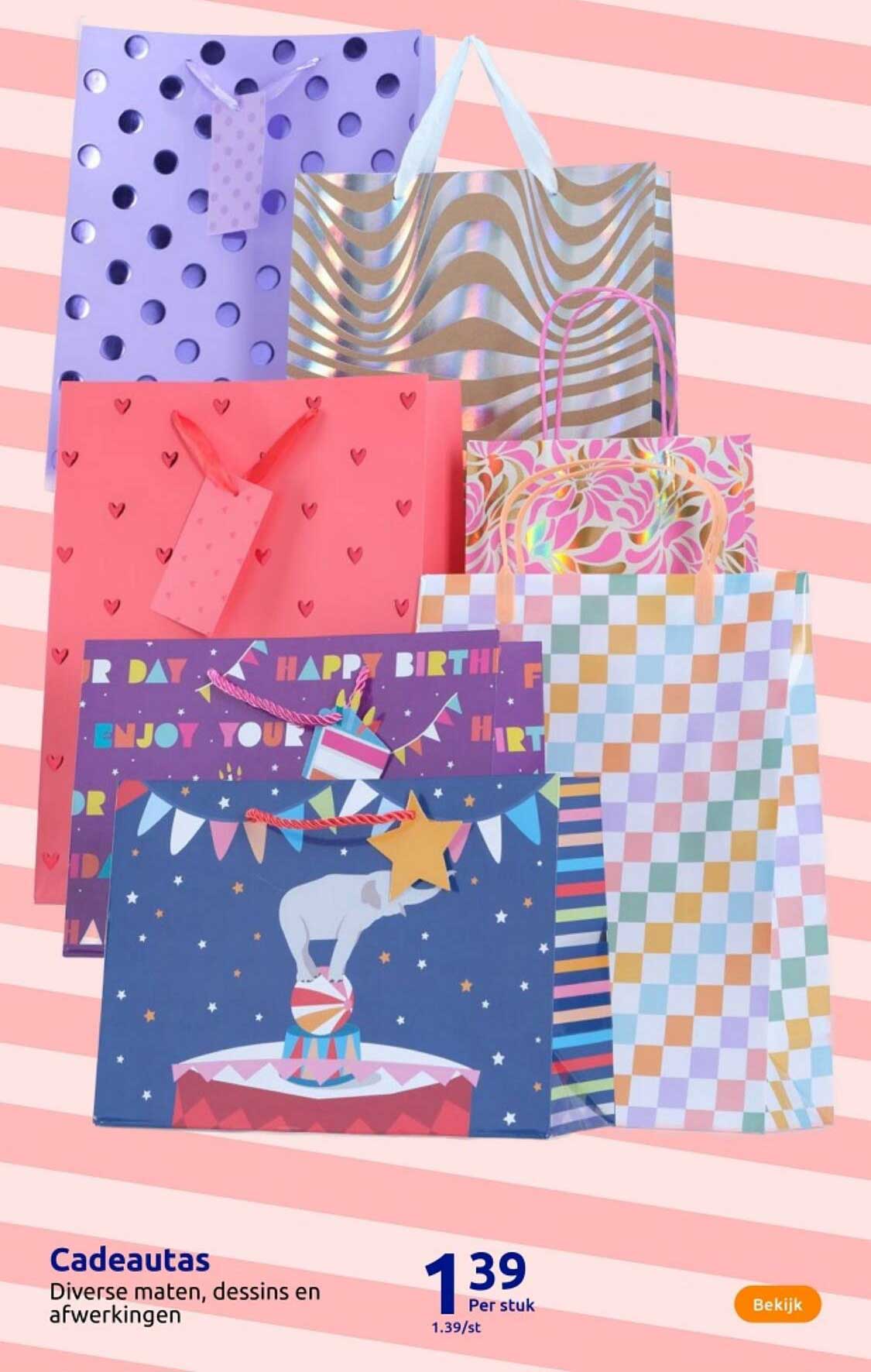 Ontdek de geweldige Cadeautas aanbieding in de nieuwste Action folder. Naast deze aanbieding vind je nog veel meer aantrekkelijke kortingen. Je kunt de Cadeautas eenvoudig online bestellen via de Action website of kopen in een winkel bij jou in de buurt.