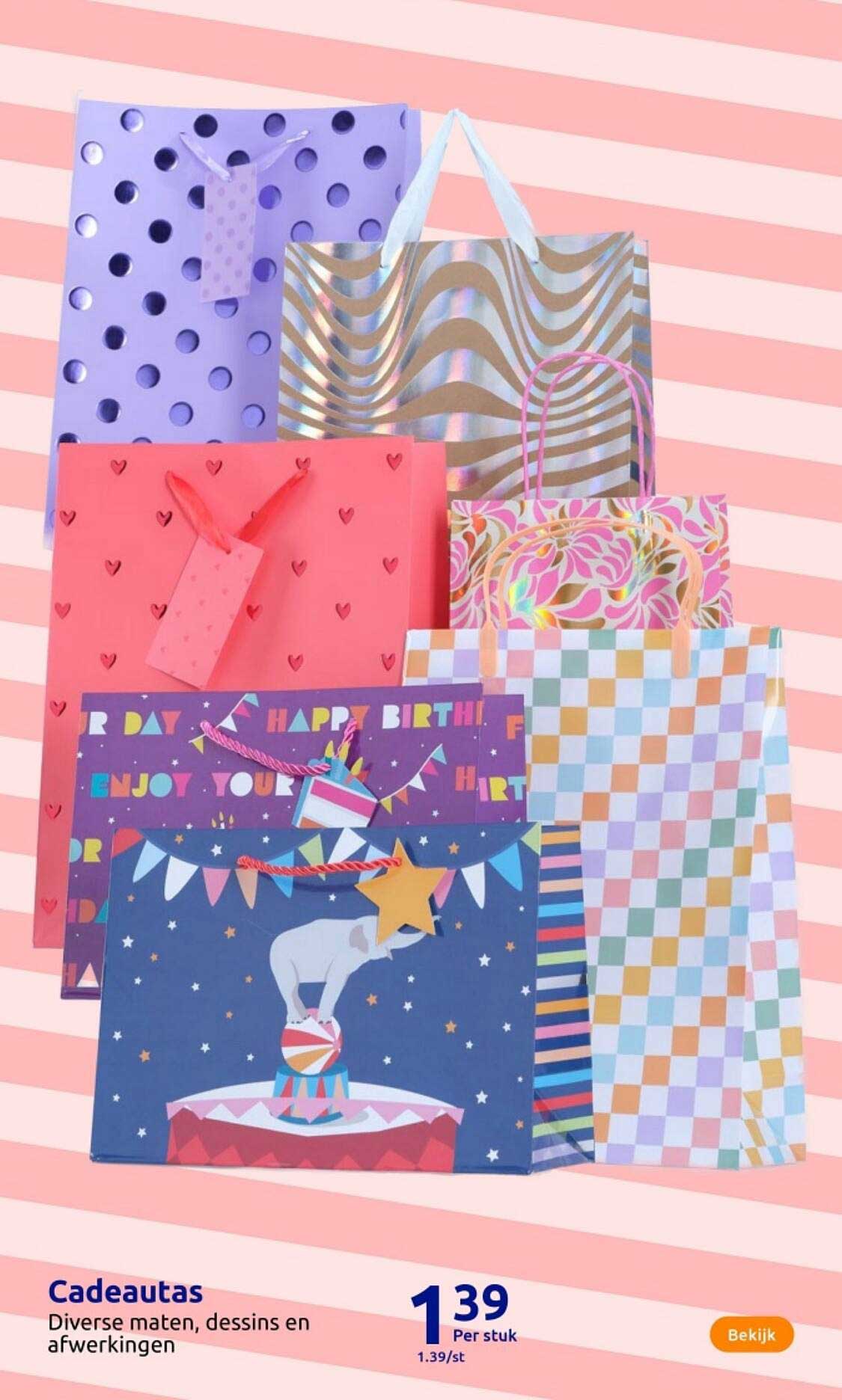 Bekijk de Cadeautas aanbieding bij Action! Deze fantastische aanbieding is nu beschikbaar in de nieuwste Action folder. Profiteer van deze kans en bespaar flink op je aankoop.