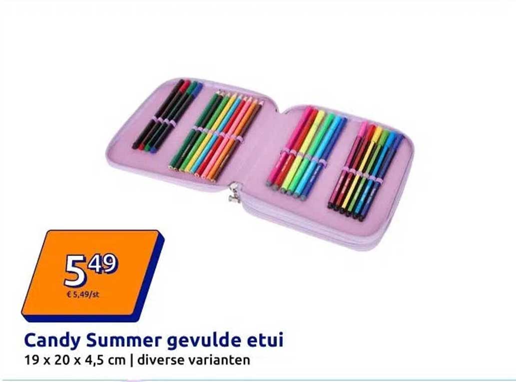 Bekijk nu de Candy Summer gevulde etui aanbieding in de Action folder. Deze aanbieding is geldig van 30-07-2025 tot en met 30-07-2025.