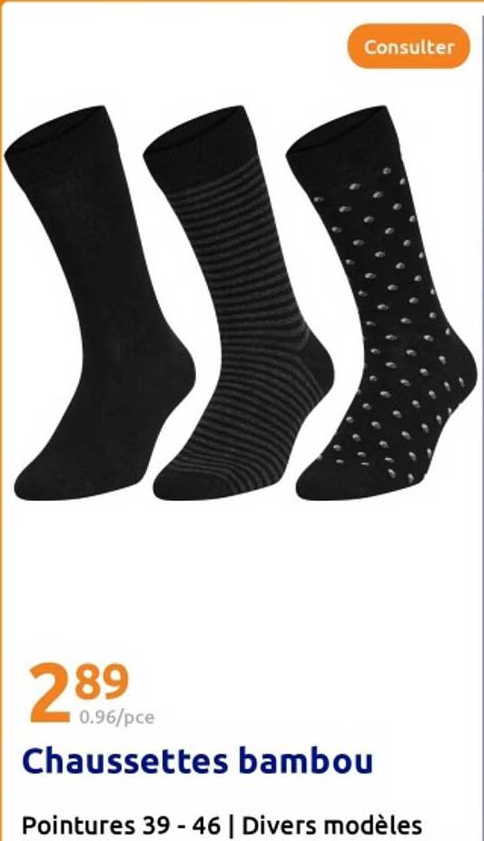 Ontdek de geweldige Chaussettes Bambou aanbieding in de nieuwste Action folder. Naast deze aanbieding vind je nog veel meer aantrekkelijke kortingen. Je kunt de Chaussettes Bambou eenvoudig online bestellen via de Action website of kopen in een winkel bij jou in de buurt.
