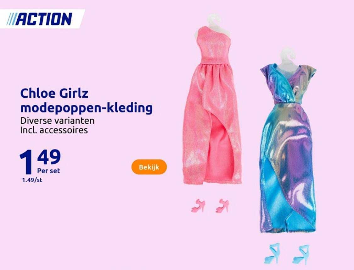 Bekijk nu de Chloe Girlz modepoppen-kleding aanbieding in de Action folder. Deze aanbieding is geldig van 04-12-2024 tot en met 10-12-2024.