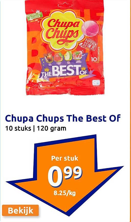 Ontdek de geweldige Chupa Chups The Best Of aanbieding in de nieuwste Action folder. Naast deze aanbieding vind je nog veel meer aantrekkelijke kortingen. Je kunt de Chupa Chups The Best Of eenvoudig online bestellen via de Action website of kopen in een winkel bij jou in de buurt.