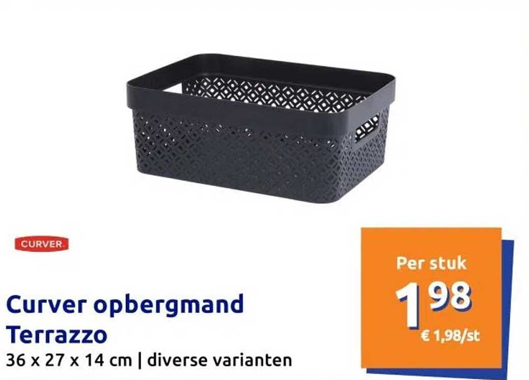 Bekijk de Curver Opbergmand Terrazzo aanbieding bij Action! Deze fantastische aanbieding is nu beschikbaar in de nieuwste Action folder. Profiteer van deze kans en bespaar flink op je aankoop.