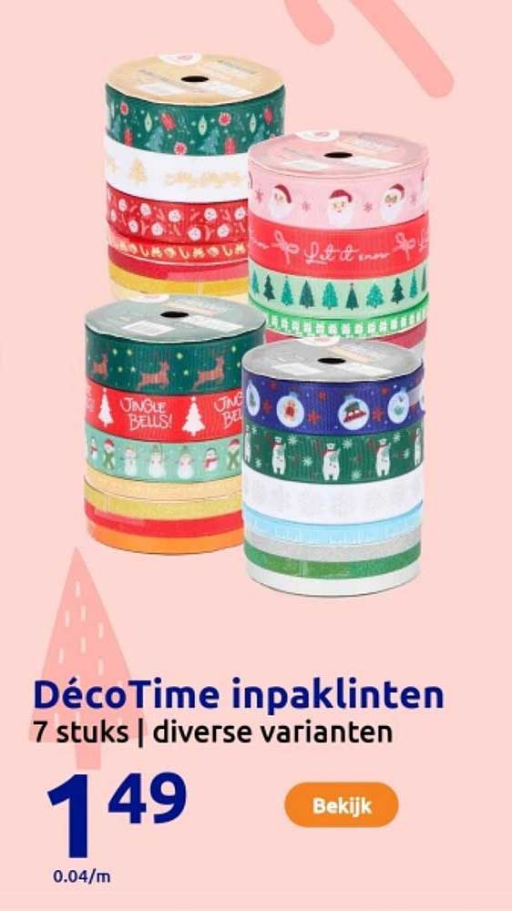 Bekijk nu de DécoTime inpaklinten 7 stuks | diverse varianten aanbieding in de Action folder. Deze aanbieding is geldig van 15-10-2025 tot en met 21-10-2025.