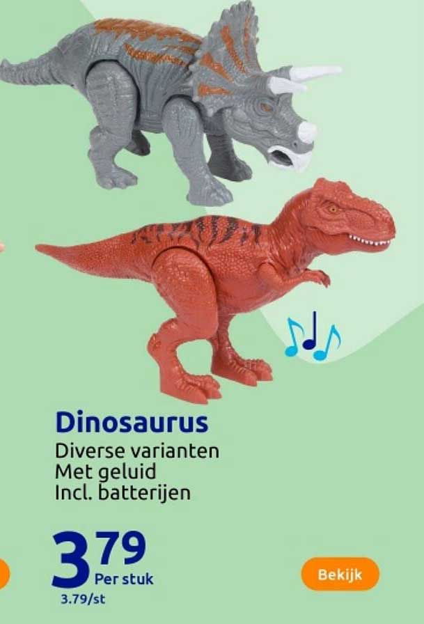 Bekijk de Dinosaurus aanbieding bij Action! Deze fantastische aanbieding is nu beschikbaar in de nieuwste Action folder. Profiteer van deze kans en bespaar flink op je aankoop.