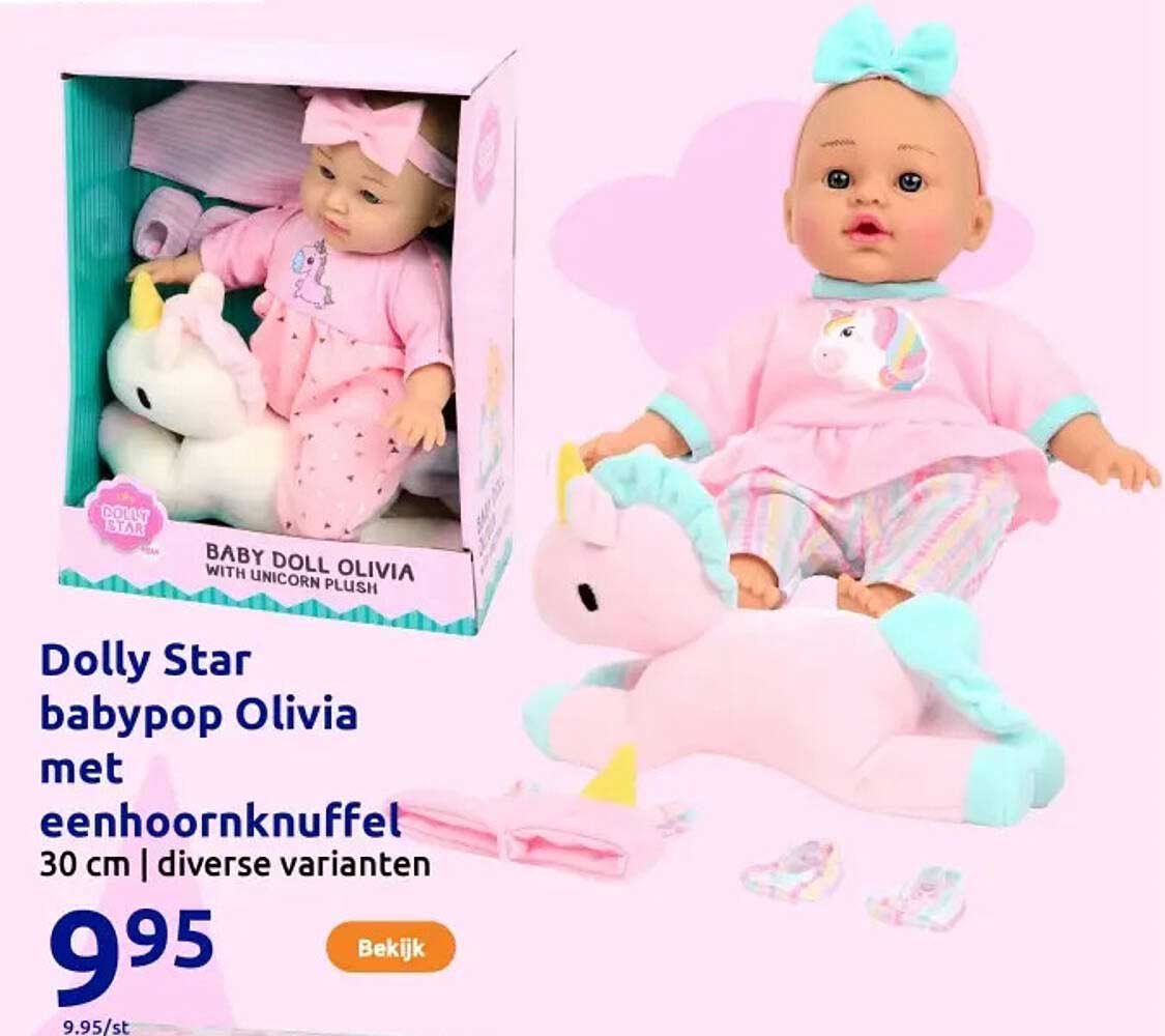 Bekijk nu de Dolly Star babypop Olivia met eenhoornknuffel aanbieding in de Action folder. Deze aanbieding is geldig van 08-10-2025 tot en met 14-10-2025.