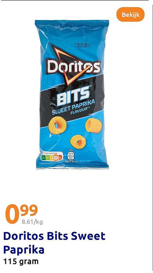 Mis deze kans niet om deze heerlijke Doritos Bits Sweet Paprika te proberen. Kijk ook op deze pagina voor andere fantastische aanbiedingen in de Action-folder en ontdek wat er nog meer in de aanbieding is. Er is vast iets bij wat je niet wilt missen!