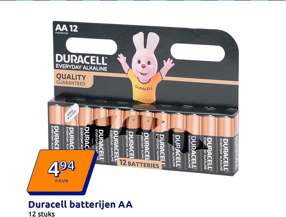 Bekijk nu de Duracell batterijen AA 12 stuks aanbieding in de Action folder. Deze aanbieding is geldig van 01-10-2025 tot en met 07-10-2025.