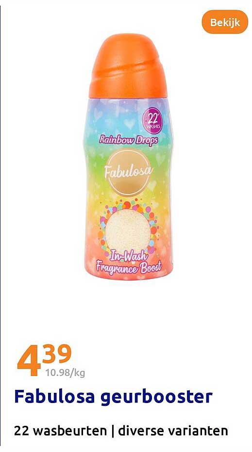 Bekijk de Fabulosa Geurboster aanbieding bij Action! Deze fantastische aanbieding is nu beschikbaar in de nieuwste Action folder. Profiteer van deze kans en bespaar flink op je aankoop.