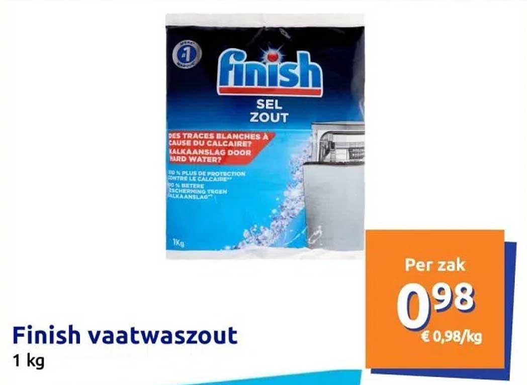 Ontdek de geweldige Finish Vaatwaszout aanbieding in de nieuwste Action folder. Naast deze aanbieding vind je nog veel meer aantrekkelijke kortingen. Je kunt de Finish Vaatwaszout eenvoudig online bestellen via de Action website of kopen in een winkel bij jou in de buurt.