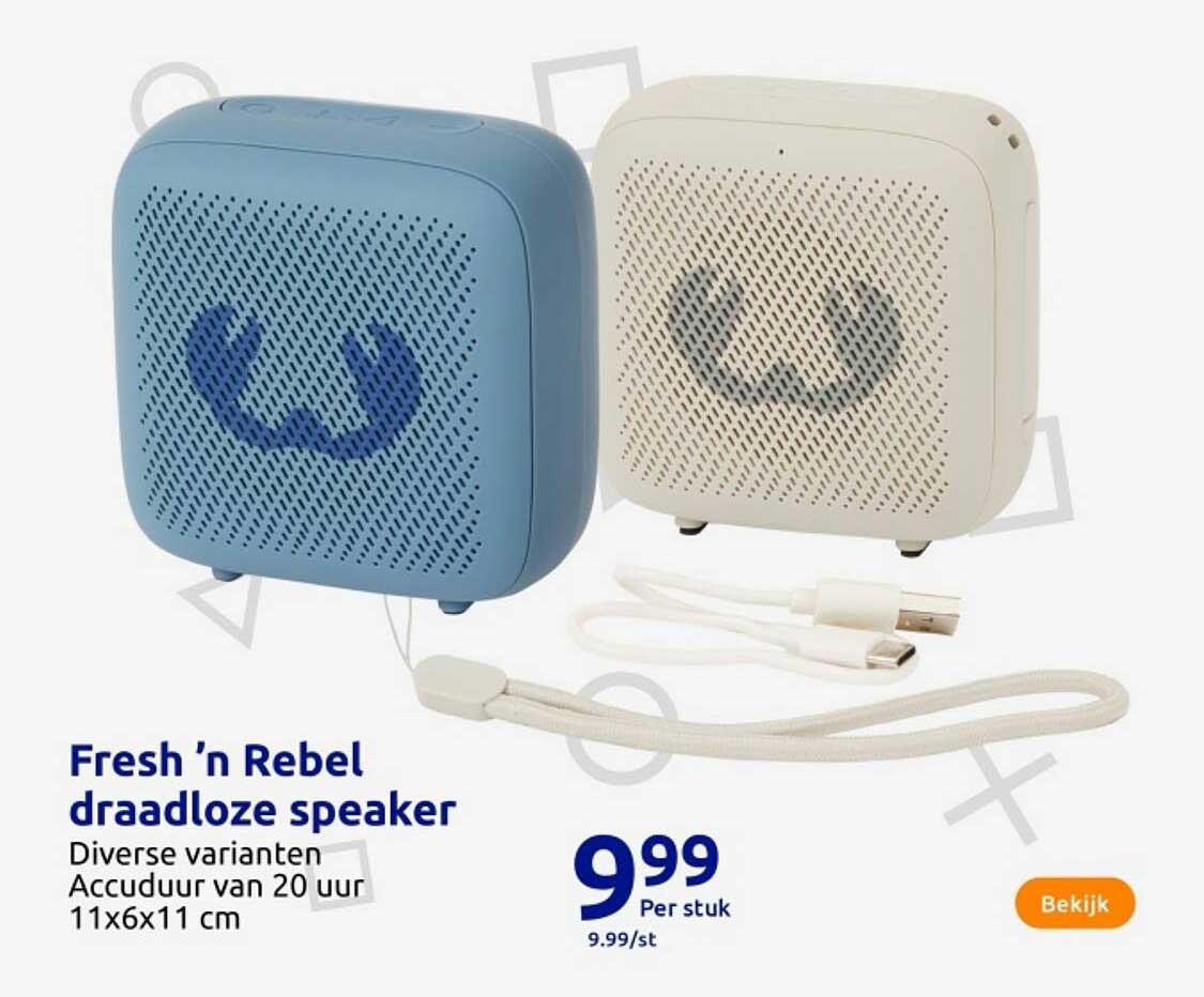 Bekijk nu de Fresh 'n Rebel draadloze speaker aanbieding in de Action folder. Deze aanbieding is geldig van 30-10-2024 tot en met 05-11-2024.