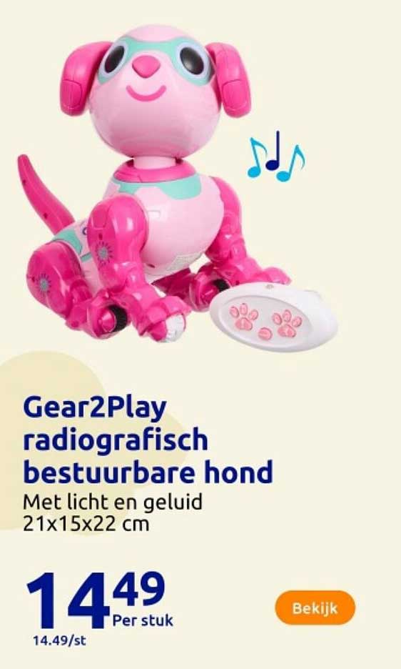 Bekijk nu de Gear2Play radiografisch bestuurbare hond aanbieding in de Action folder. Deze aanbieding is geldig van 16-10-2024 tot en met 22-10-2024.