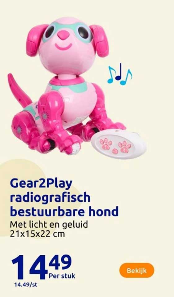 Bekijk nu de Gear2Play radiografisch bestuurbare hond aanbieding in de Action folder. Deze aanbieding is geldig van 20-11-2024 tot en met 26-11-2024.