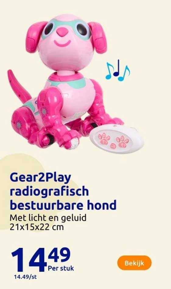 Bekijk nu de Gear2Play radiografisch bestuurbare hond aanbieding in de Action folder. Deze aanbieding is geldig van 11-12-2024 tot en met 17-12-2024.