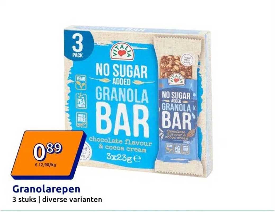 Ontdek de geweldige Granolarepen aanbieding in de nieuwste Action folder. Naast deze aanbieding vind je nog veel meer aantrekkelijke kortingen. Je kunt de Granolarepen eenvoudig online bestellen via de Action website of kopen in een winkel bij jou in de buurt.