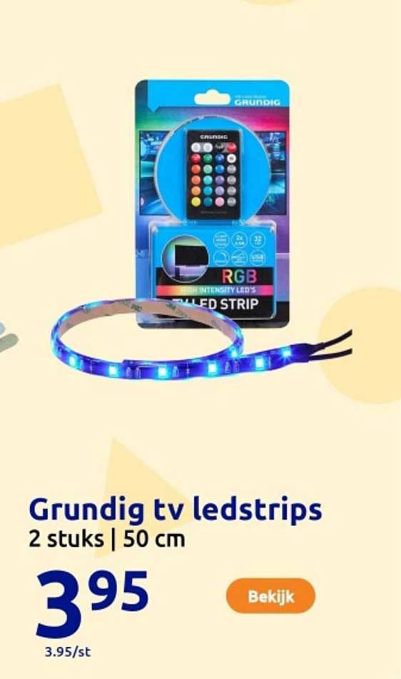Bekijk nu de Grundig tv ledstrips 2 stuks | 50 cm aanbieding in de Action folder. Deze aanbieding is geldig van 15-10-2025 tot en met 21-10-2025.