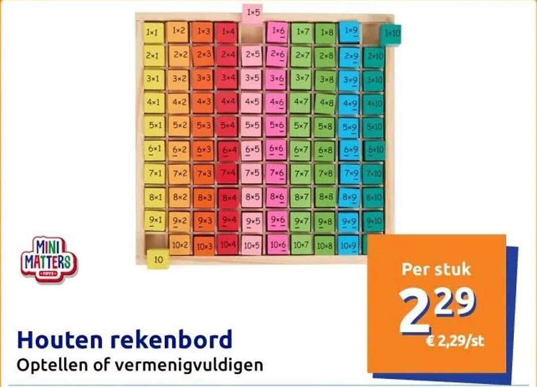 Bekijk de Houten Rekenbord Optellen Of Vermenigvuldigen aanbieding bij Action! Deze fantastische aanbieding is nu beschikbaar in de nieuwste Action folder. Profiteer van deze kans en bespaar flink op je aankoop.