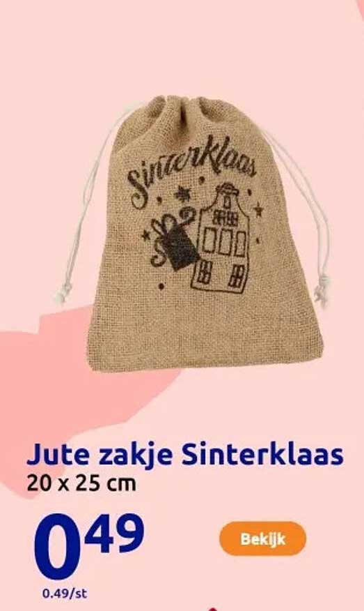 Bekijk nu de Jute zakje Sinterklaas aanbieding in de Action folder. Deze aanbieding is geldig van 05-11-2025 tot en met 11-11-2025.