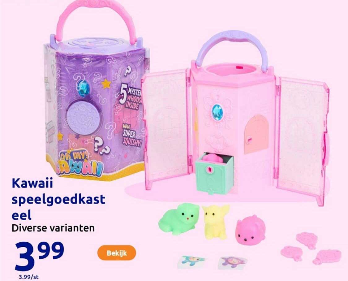 Bekijk nu de Kawaii speelgoedkast eel Diverse varianten aanbieding in de Action folder. Deze aanbieding is geldig van 15-10-2025 tot en met 21-10-2025.
