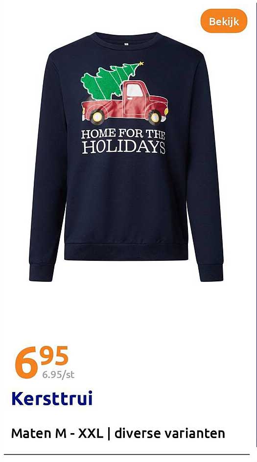 Ontdek de geweldige Kersttrui aanbieding in de nieuwste Action folder. Naast deze aanbieding vind je nog veel meer aantrekkelijke kortingen. Je kunt de Kersttrui eenvoudig online bestellen via de Action website of kopen in een winkel bij jou in de buurt.