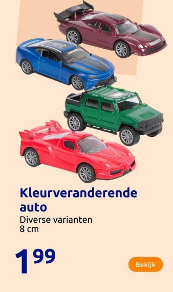 Bekijk de Kleurveranderende Auto aanbieding bij Action! Deze fantastische aanbieding is nu beschikbaar in de nieuwste Action folder. Profiteer van deze kans en bespaar flink op je aankoop.