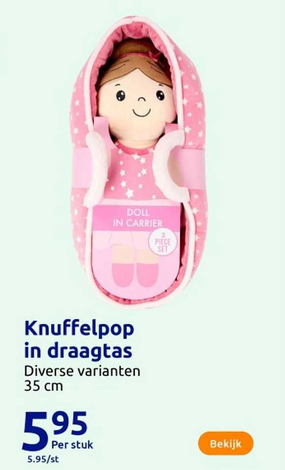 Ontdek de geweldige Knuffelpop In Draagtas aanbieding in de nieuwste Action folder. Naast deze aanbieding vind je nog veel meer aantrekkelijke kortingen. Je kunt de Knuffelpop In Draagtas eenvoudig online bestellen via de Action website of kopen in een winkel bij jou in de buurt.