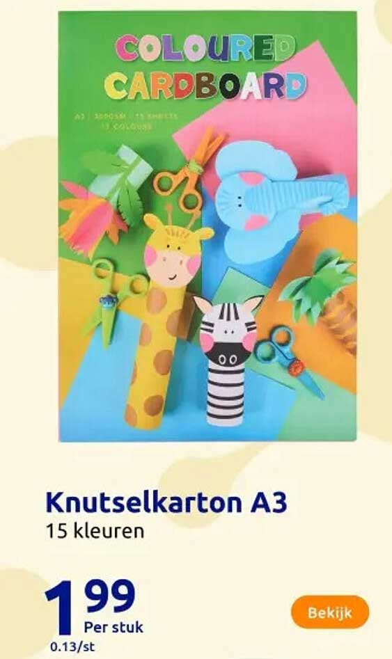 Ontdek de geweldige Knutselkarton A3 aanbieding in de nieuwste Action folder. Naast deze aanbieding vind je nog veel meer aantrekkelijke kortingen. Je kunt de Knutselkarton A3 eenvoudig online bestellen via de Action website of kopen in een winkel bij jou in de buurt.