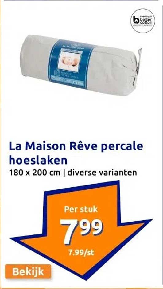 Bekijk nu de La Maison Rêve percale hoeslaken aanbieding in de Action folder. Deze aanbieding is geldig van 01-01-2025 tot en met 07-01-2025.