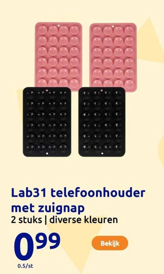 Bekijk nu de Lab31 telefoonhouder met zuignap aanbieding in de Action folder. Deze aanbieding is geldig van 15-10-2025 tot en met 21-10-2025.