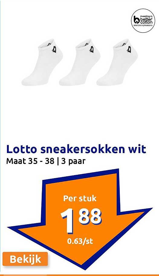 Bekijk nu de Lotto sneakersokken wit aanbieding in de Action folder. Deze aanbieding is geldig van 18-09-2024 tot en met 24-09-2024.