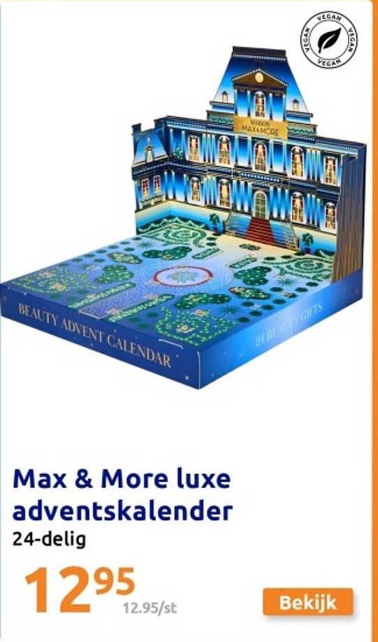 Bekijk de Max & More Luxe Adventskalender aanbieding bij Action! Deze fantastische aanbieding is nu beschikbaar in de nieuwste Action folder. Profiteer van deze kans en bespaar flink op je aankoop.