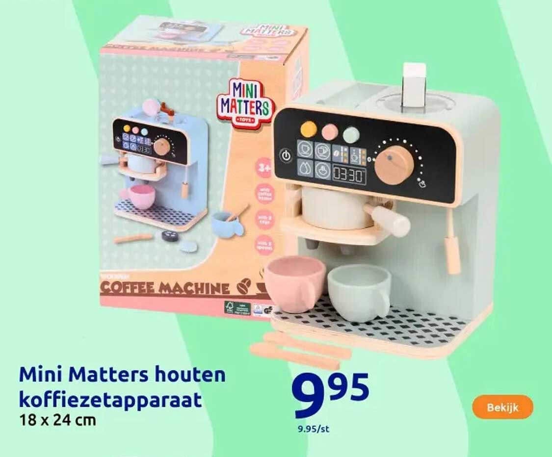 Bekijk nu de Mini Matters houten koffiezetapparaat aanbieding in de Action folder. Deze aanbieding is geldig van 05-11-2025 tot en met 11-11-2025.