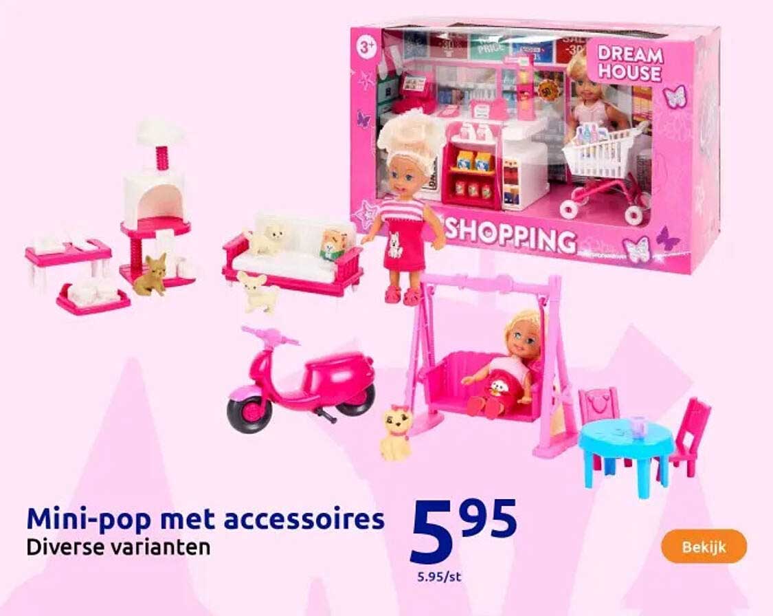 Bekijk nu de Mini-pop met accessoires aanbieding in de Action folder. Deze aanbieding is geldig van 08-10-2025 tot en met 14-10-2025.