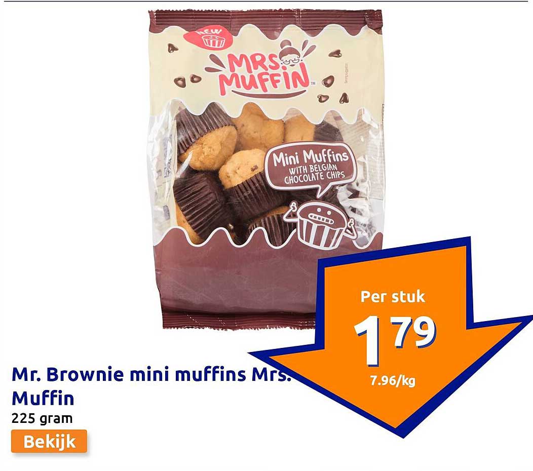 Ontdek de geweldige Mr. Brownie Mini Muffins Mrs. Muffin aanbieding in de nieuwste Action folder. Naast deze aanbieding vind je nog veel meer aantrekkelijke kortingen. Je kunt de Mr. Brownie Mini Muffins Mrs. Muffin eenvoudig online bestellen via de Action website of kopen in een winkel bij jou in de buurt.