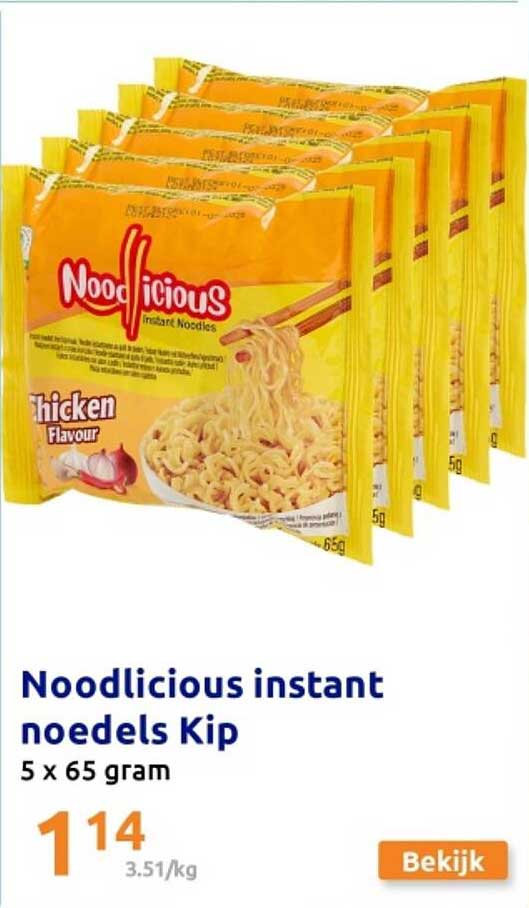 Bekijk de Noodlicious Instant Noedels Kip aanbieding bij Action! Deze fantastische aanbieding is nu beschikbaar in de nieuwste Action folder. Profiteer van deze kans en bespaar flink op je aankoop.