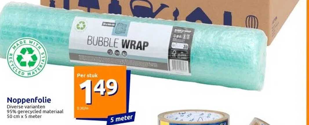 Ontdek de geweldige Noppenfolie aanbieding in de nieuwste Action folder. Naast deze aanbieding vind je nog veel meer aantrekkelijke kortingen. Je kunt de Noppenfolie eenvoudig online bestellen via de Action website of kopen in een winkel bij jou in de buurt.