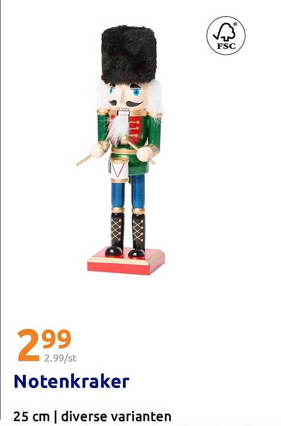 Voor slechts €2,99 per stuk is de notenkraker een buitengewone aanbieding! Normaal gesproken zou je voor een vergelijkbaar product veel meer betalen. Dit is de ideale gelegenheid om je kerstartikelen aan te vullen zonder je budget te overschrijden.