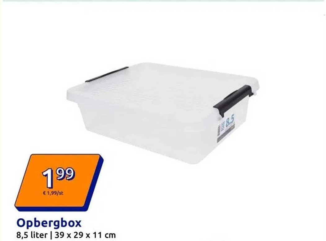 Bekijk de Opbergbox aanbieding bij Action! Deze fantastische aanbieding is nu beschikbaar in de nieuwste Action folder. Profiteer van deze kans en bespaar flink op je aankoop.