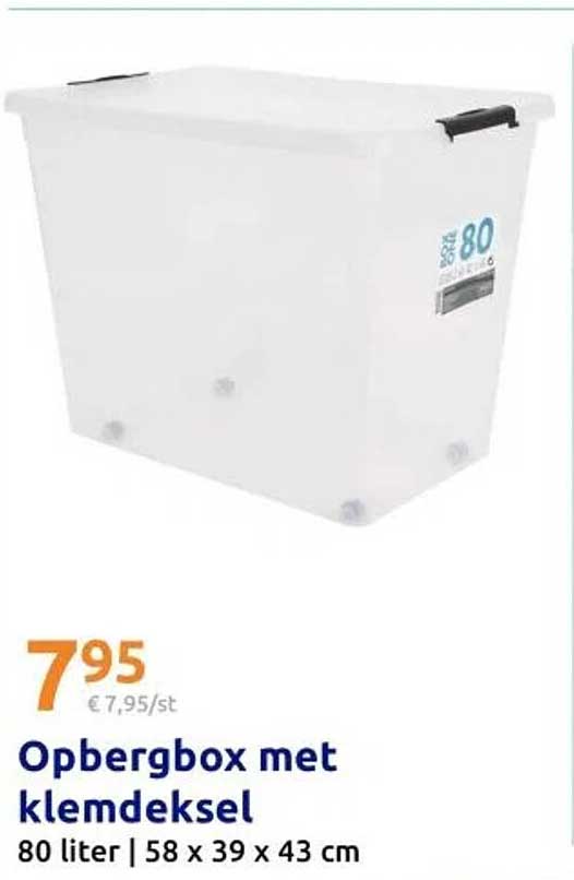 Heb je genoeg van rommelige ruimtes in huis? De opbergbox met klemdksel is de perfecte oplossing voor al je opslagproblemen! Met een royale inhoud van 80 liter biedt deze box voldoende ruimte voor speelgoed, kleding, of seizoensgebonden spullen. En met een prijs van slechts €7,95 is dit een aanbieding die je niet wilt missen. Op deze pagina vind je meer details.