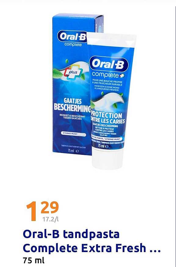 Bekijk nu de Oral-B tandpasta Complete Extra Fresh 75 ml aanbieding in de Action folder. Deze aanbieding is geldig van 01-10-2025 tot en met 07-10-2025.